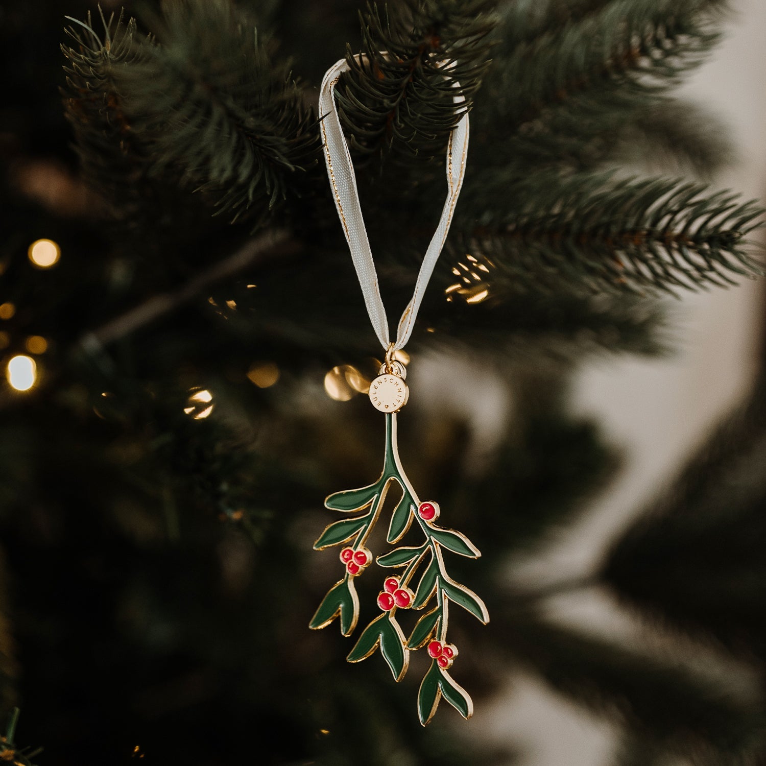 • Baumschmuck mit Mistelzweig-Motiv