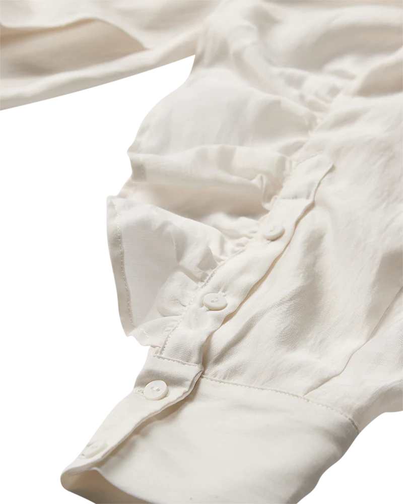 • Lange Ärmel Mit erweiterter 4-Knopf- Manschette und Rüschen